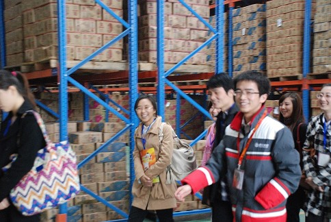 上午十点,同学们在解说人员的带领下参观了整个厂区,对尊龙凯时食品的生产、仓储、行政、营销等方面有了更深了解。参观途中,同学们兴致很高,与工作人员就“6S”管理、车间流水线生产、叉车使用、产品检验等多方面话题进行了交流。