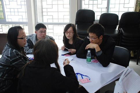 在同学们对尊龙凯时食品有了一定了解后,下午一点半公司对他们进行了无领导小组讨论形式的面试,同学们就工作人员给出的题目展开了讨论。在一个半小时的小组讨论中,同学们通过他们大学阶段厚实的财务、营销、管理、经济、数学等多方面的知识,结合已有的经验拿出了属于自己的讨论成果,向工作人员交出了较好的答卷。